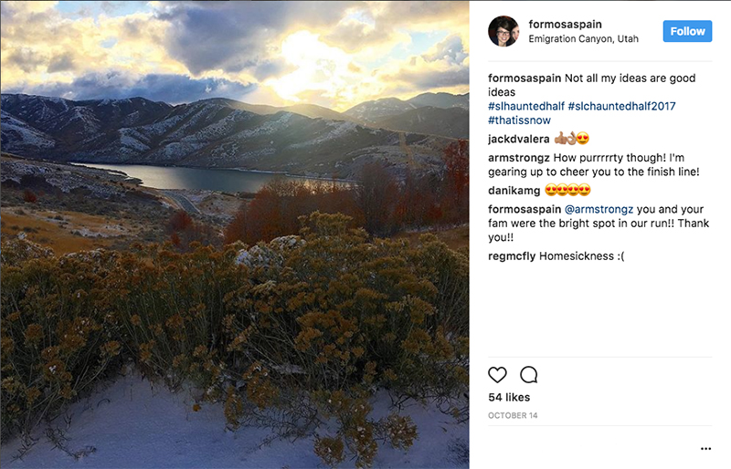 Race day arrived cold, but no snow. At least in the valley, but there were reports that there was “a little” snow up Emigration Canyon, where the starting line was located. I dressed in layers and kept reminding myself that there’s salt and the race didn’t start until the sun was up, so it would be all melted before we started! Right? RIGHT?!