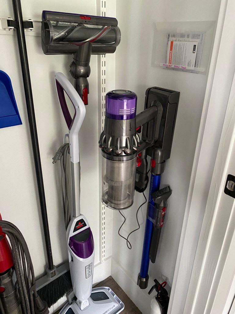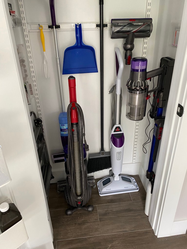 I had already altered the floor plan to create a larger entryway with a nice big coat closet for guests (and, let’s be honest, Bella stuff) so it seemed even more unnecessary. I was just about to have them erase the small closet when I realized that nowhere, in our brand new home, had I planned for a place to keep the vacuum, broom, and other cleaning supplies.