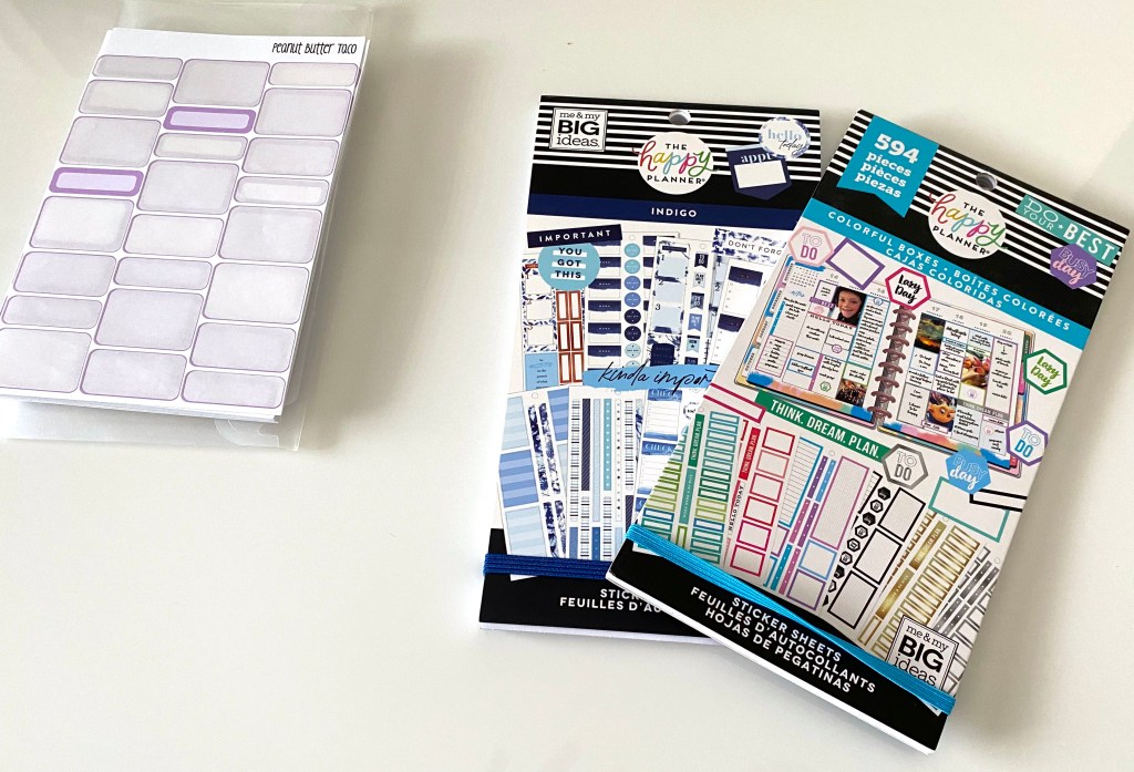 Early on, I purchased several Happy Planner sticker books, because I discovered them through more targeted ads and thought I’d give them a try. I use them to create appointment blocks and to-do lists, so I prefer those kinds and unfortunately those are the hardest sticker books to come by. Because of this, I spent a bunch of time searching and found a shop on etsy that sells appointment blocks in various colors as well as many many other beautiful planner stickers.