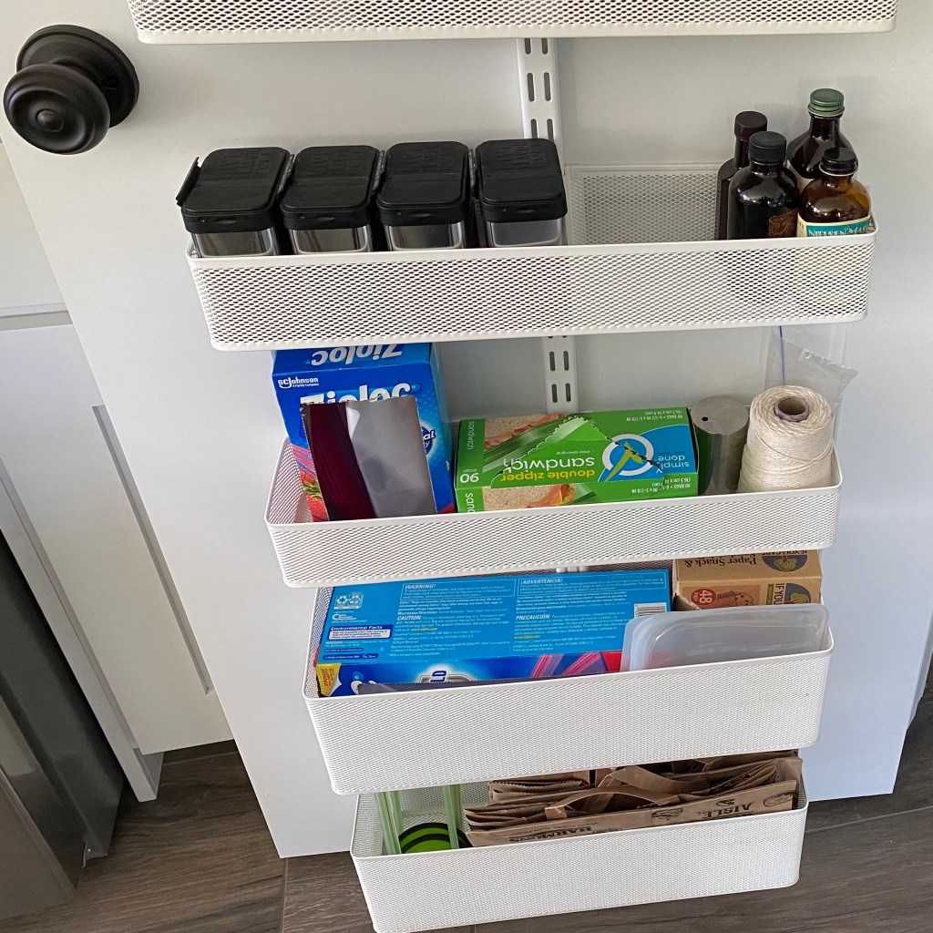 Love the baking zone and ELFA door storage. Well, time to declutter and re-do my pantry.