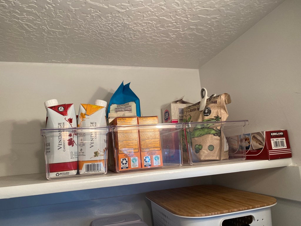 At our former dwelling (the condo), we didn’t have a pantry. Other than the fridge and a small section of one of our (precious few) cabinets, we just shopped for what we needed each week. Fortunately, we lived across the street from a very nice grocery store and this was a feasible solution to our pantry-less kitchen.